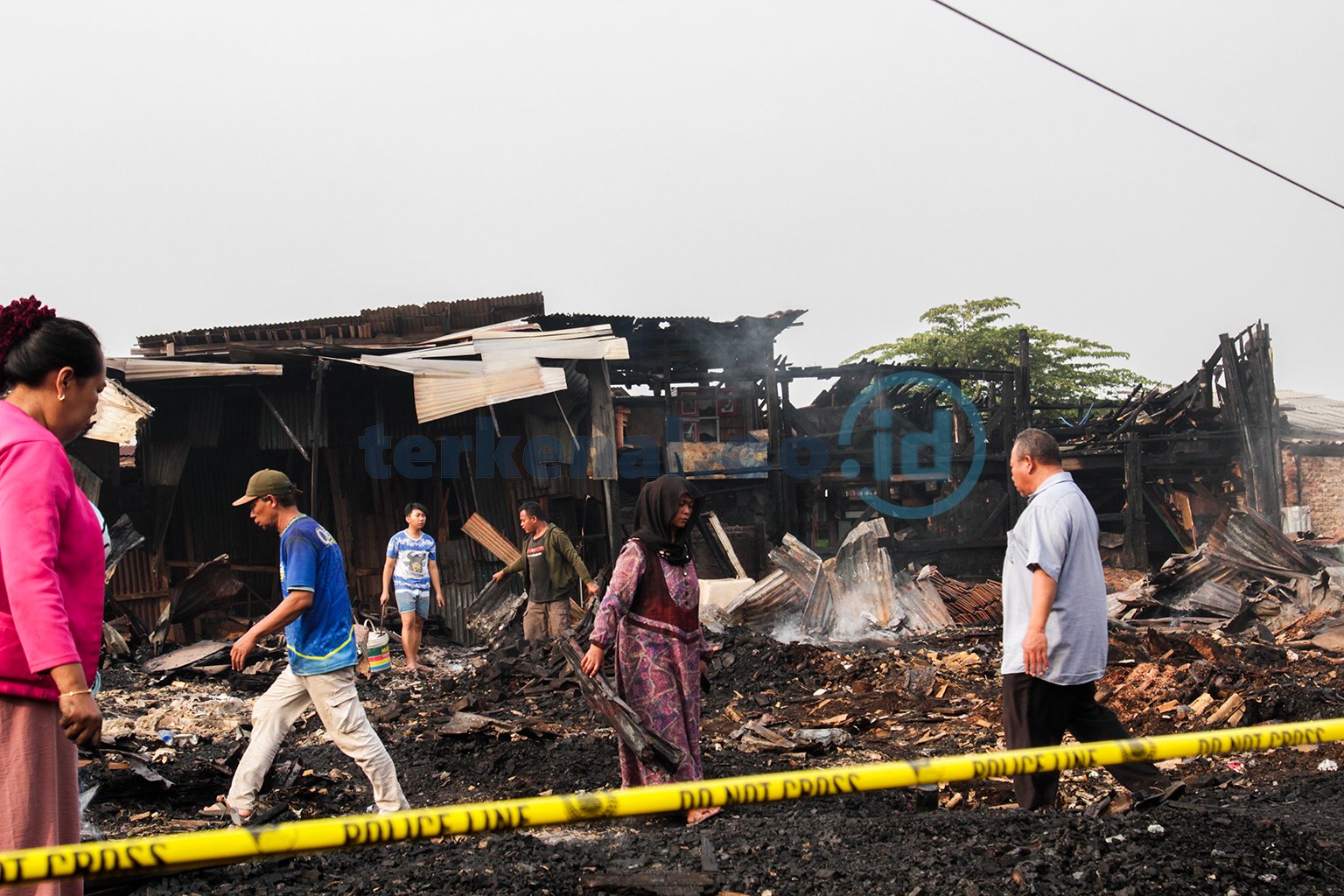 Sejumlah warga yang terdampak terlihat menyelamatkan barang-barang yang masih layak pakai dari sisa puing kios yang terbakar di kawasan Sukahaji, Jalan Terusan Pasirkoja, Bandung, Jawa Barat, pada Kamis (10/4/2025). Kepala UPT Diskar PB Wilayah Selatan, Asep Mulyono, menyampaikan bahwa pihaknya menerima laporan kebakaran pada Rabu (9/4/2025) dini hari sekitar pukul 23.53 WIB dan langsung mengerahkan 14 unit mobil pemadam ke lokasi. Penyebab kebakaran masih dalam penyelidikan pihak berwenang. Diketahui pula bahwa lokasi kejadian berada di area lahan yang tengah bersengketa.