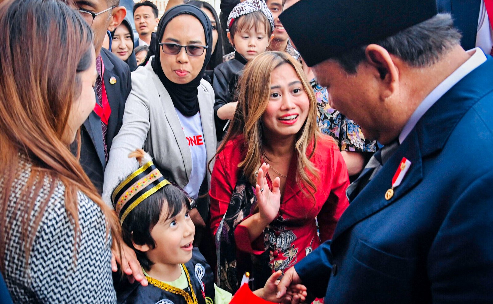 Presiden Prabowo menghampiri masyarakat Indonesia yang telah menunggu, kemudian menyapa, berbincang ringan, dan dengan hangat melayani permintaan swafoto. Momen ini disambut antusias, bahkan beberapa diantara diaspora datang bersama anak-anak mereka.