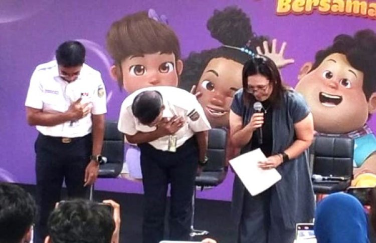 Didiek pun sempat menundukkan badan ketika menyampaikan info penanganan KA Argo Bromo Anggrek.
