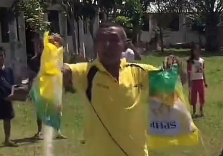 Dalam video tersebut, terlihat sejumlah warga menunjukkan karung plastik kosong yang semula berisi beras bantuan. Warga mengaku paket bantuan pecah saat menyentuh tanah sehingga isinya berserakan dan tidak dapat dikonsumsi.