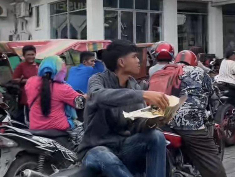 Dalam sebuah video yang beredar di media sosial, terlihat seorang warga yang harus makan di lokasi antrean karena menunggu begitu lama.