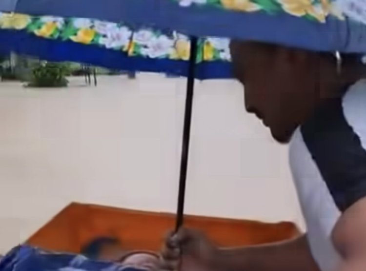 Di tengah arus banjir yang menggenangi pemukiman, sang ayah tampak hati-hati mendorong tong tersebut agar tetap seimbang, sementara dua bayinya duduk di dalamnya dengan kondisi basah dan ketakutan. Aksi penyelamatan sederhana namun penuh cinta itu langsung menyentuh hati banyak warganet.