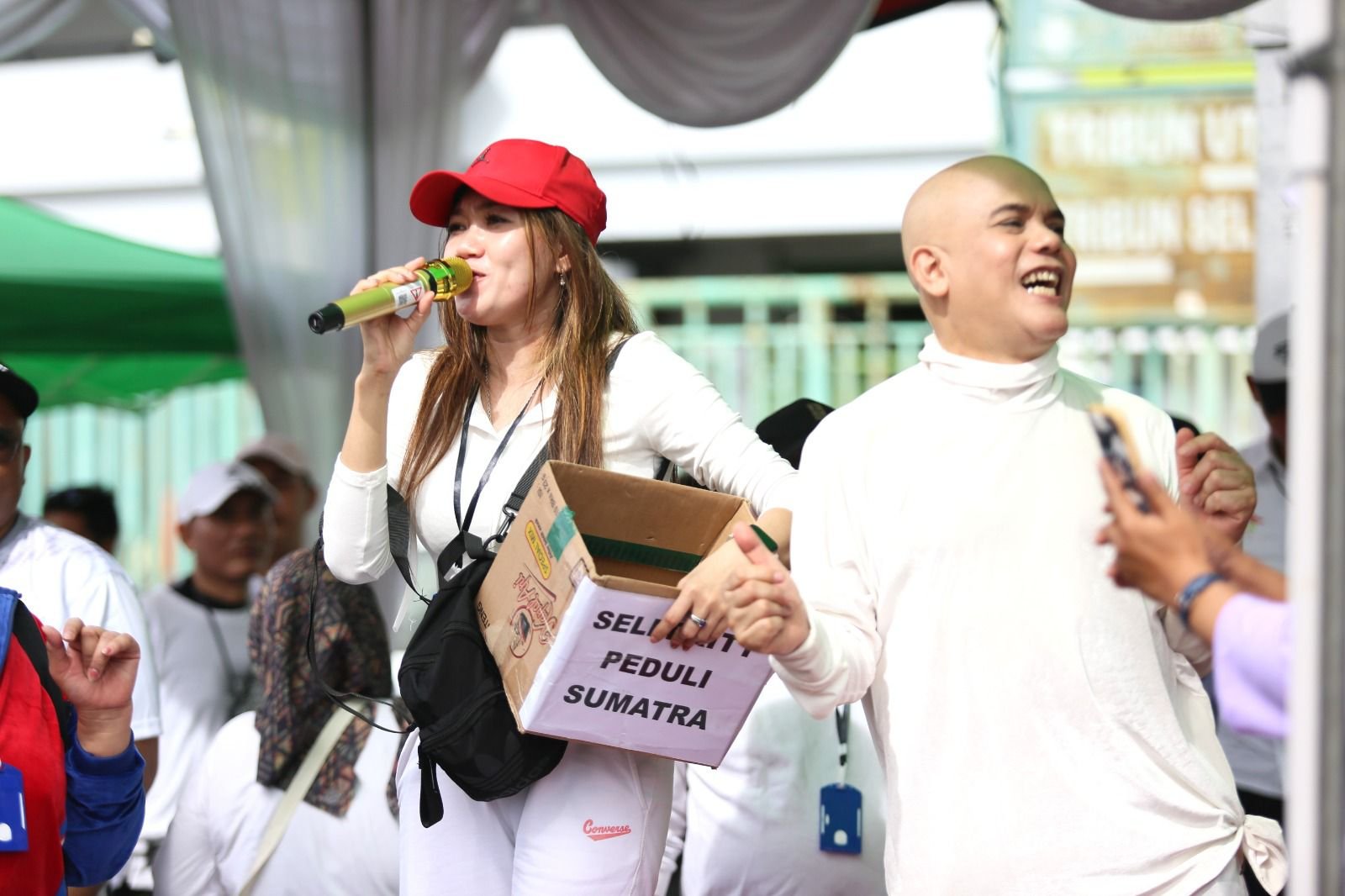 Alya Liu tampak aktif berinteraksi dengan pengunjung. Di sela-sela acara, ia beberapa kali menghibur warga dengan bernyanyi dan melontarkan candaan yang mengundang tawa. “Ayo yang donasi bisa dapat berkah, loh, juga ada kenangannya,” ujar Alya Liu sambil menyemangati para pengunjung.