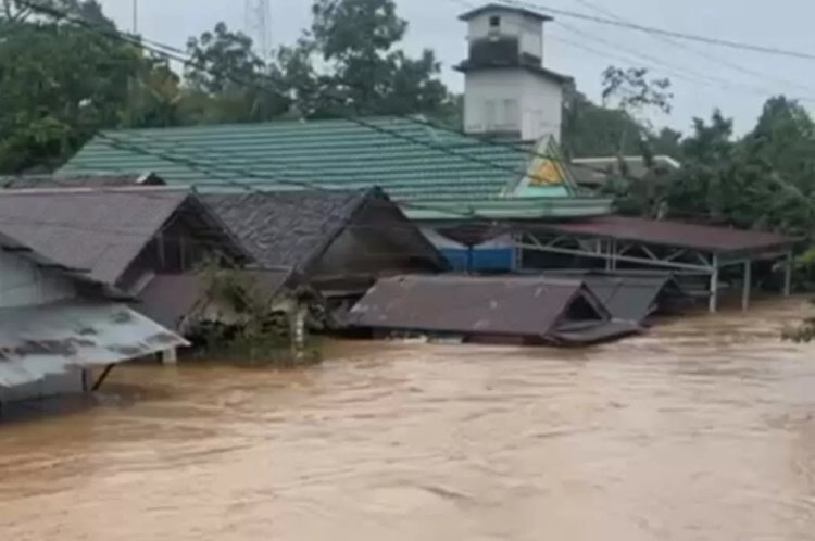 Banjir melanda Kabupaten Balangan, Kalimantan Selatan (Kalsel), Sabtu (27/12/2025). Debit air yang naik secara tiba-tiba membuat warga panik, lantaran ketinggian air dengan cepat mencapai plafon rumah di sejumlah wilayah terdampak.