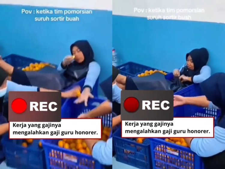 Pada tayangan video, muncul keterangan bertuliskan “POV: ketika tim pomorsuan disuruh sortir buah” serta “Kerja yang gajinya mengalahkan gaji guru honorer”. Narasi tersebut kemudian memicu beragam reaksi dari warganet.