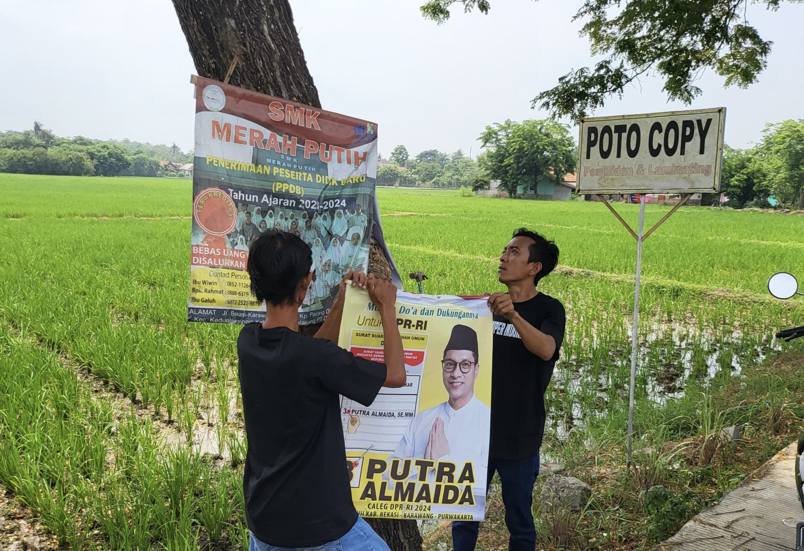 Waduh! APK Caleg yang Dipaku di Pohon Dicopot-copotin Pemuda Bekasi