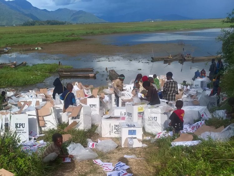 Warga di Distrik Yagai dan Kebo, Kabupaten Paniai, Papua, telah memutuskan untuk memboikot logistik Pemilu 2024 dengan membuangnya di pinggir danau.